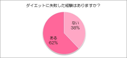 品川美容外科が10代~50代の女性330人を対象に実施した調査によると、「これまでダイエットに失敗した経験はありますか?」との質問で、62%もの女性が「ダイエットに失敗した経験がある」と回答しています。