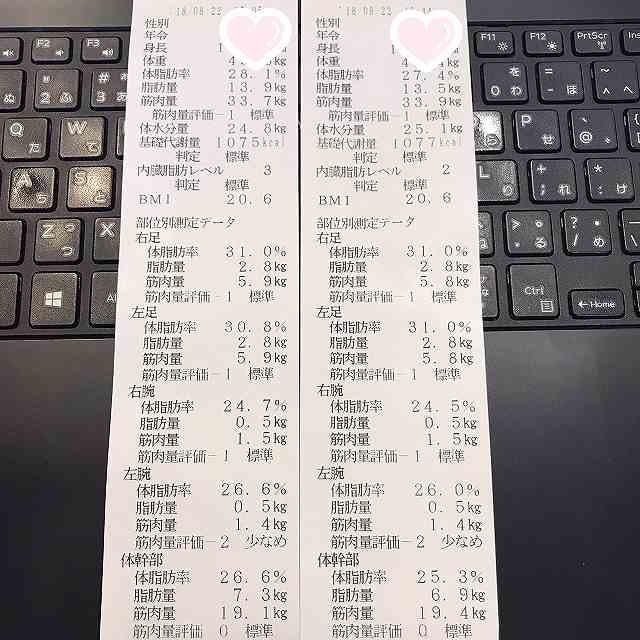 体験終了後は数値が記載された用紙もいただけました♡これを元にモチベーション上げてダイエット継続していきしょう♡
