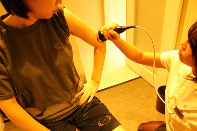 ※通常自分で機器を使用しますが、体験ということでトレーナーさんにあててもらっています
