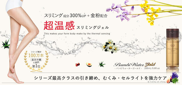 おすすめランキング1位のバンビウォーターは、美肌・引き締め・冷え性対策の3つが同時にできるスリミングジェル!