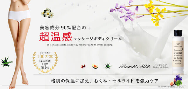 バンビミルクは、美肌・引き締め・冷え対策の3つが同時にできる口コミで人気のスリミングクリーム。