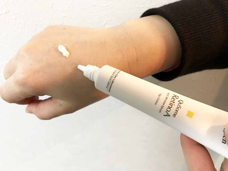 シワに効果的な商品、という事はよくわかったのですが、まだまだ半信半疑のところもあり……。そんな気になるQuSomeレチノAを、実際に試してみることにしました!
