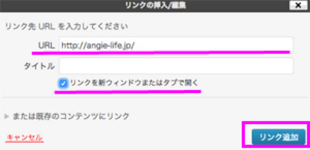 ※「リンクを新ウィンドウまたはタブで開く」にチェックを入れること。